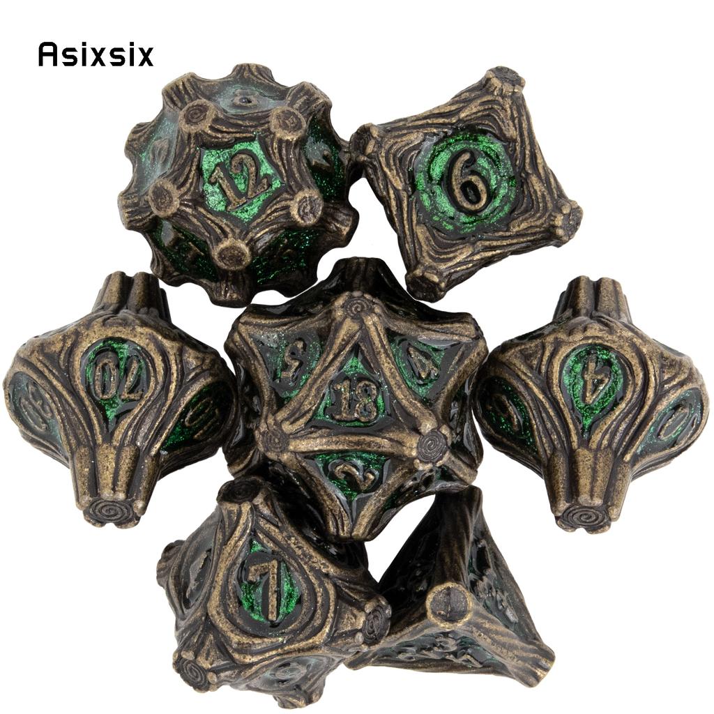 7 Pcs GreenTree Stump Root Metal Dice Solid Metal Polyhedral Dice Set Suitable for Role-Playing RPG Board Game Card Game