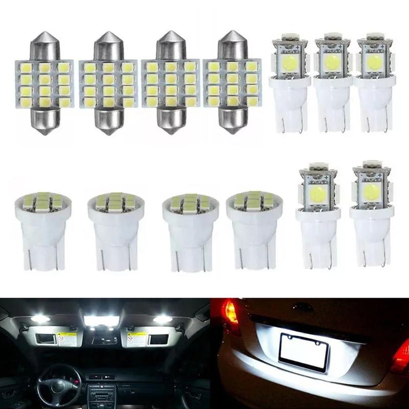 13pcs/Set 12V White LED Universal Car Interior Light Dome Map License Plate Lamp Bulb Kit 6000K