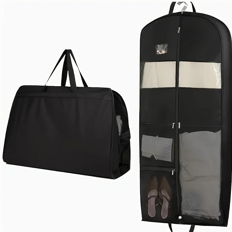 Gusseted Travel Hanging Garment Bag - Zipper Closure with Pocket for Shirts, Coats, Dresses, Storage Organizer