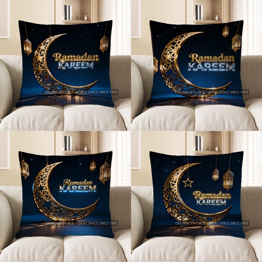 2D Ramadan Kareem Moon & Lantern Throw Pillow Pattern Cushion Cover Suitable For Sofa Bedroom Car Pillow Cover