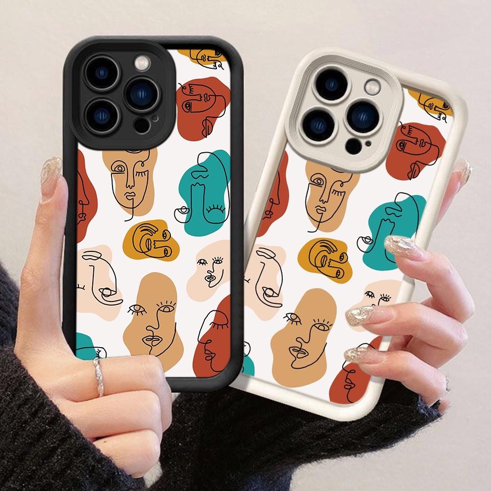 JT3 Abstract Faces One Line Drawing Phone for for iPhone 17 16 Pro Max Samsung S26 Ultra A17 A26 A07 Xiaomi Redmi Note 14 Pro Plus Soft TPU Case Cover