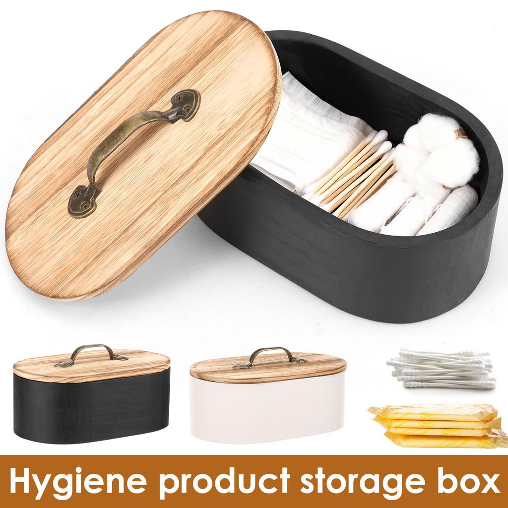 Wooden Tampon Holder with Lid Oval Bathroom Tampon Storage Box Large Capacity Dust Proof Feminine Product Organizer
