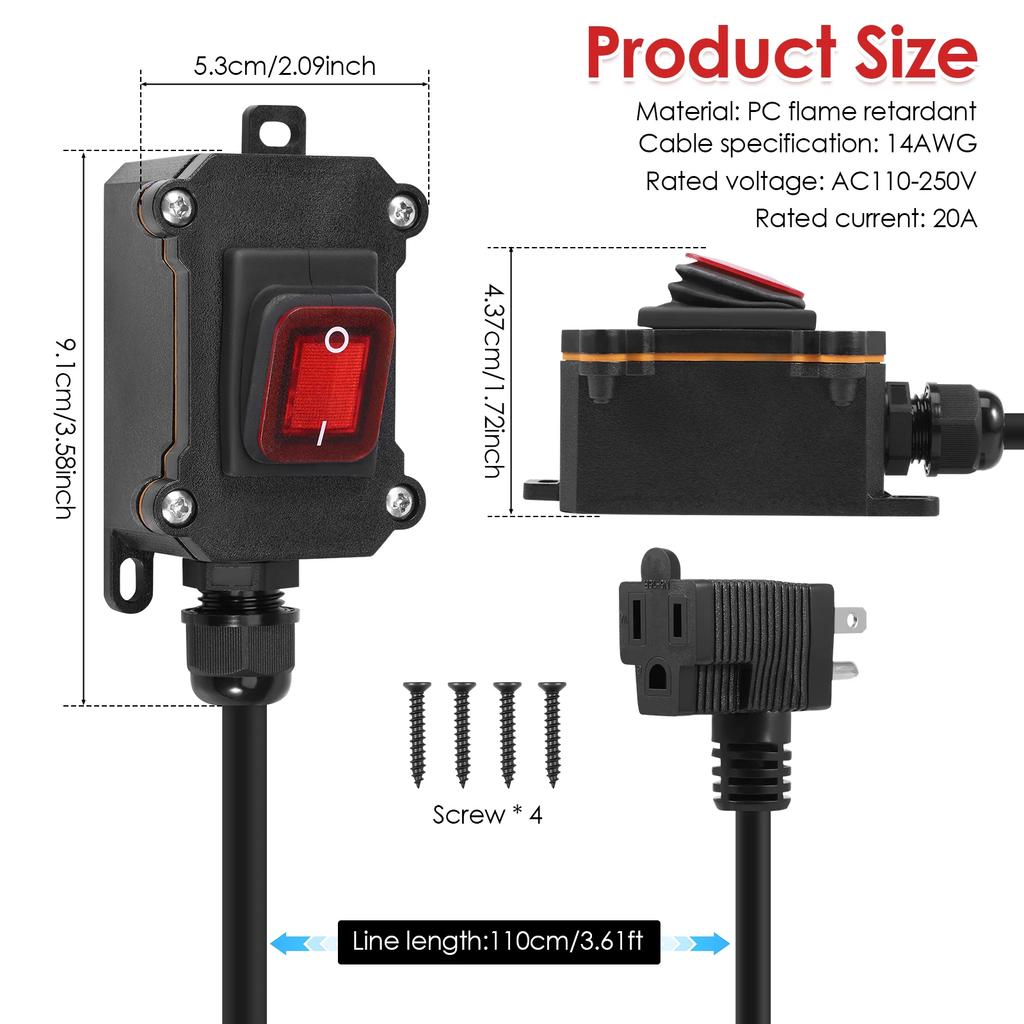 Inline Cord Switch with 3.61FT 14AWG Cable Piggyback Plug Waterproof Extension Cord 20A-250V Inline Power Switch for Appliance E