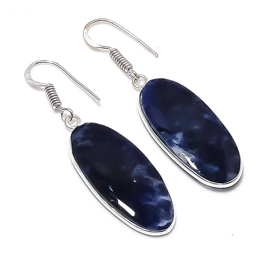Natural Sodalite Gemstone 925 Sterling Silver Jewelry Earring 1.81" AEE-11021