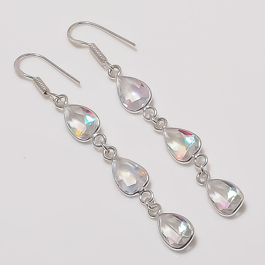 Natural White Topaz Gemstone 925 Sterling Silver Jewelry Earring 2.68" AEE-11279