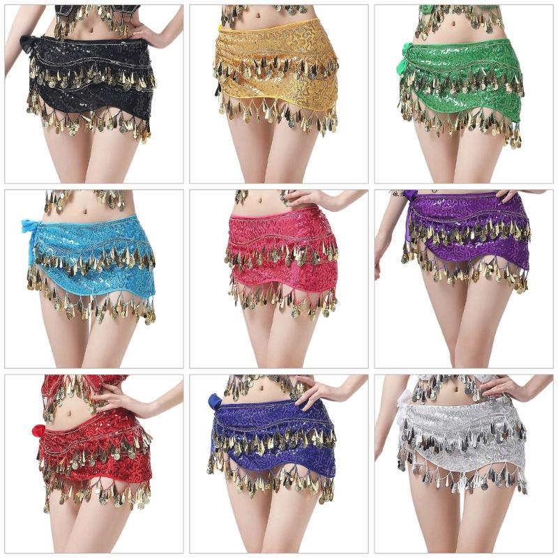 Women Belly Dance Belt Hip Scarf, Bellydance Hip Scarf Skirt Belly Dance Waist Chain with Gold Coins Belly Dance Cloth