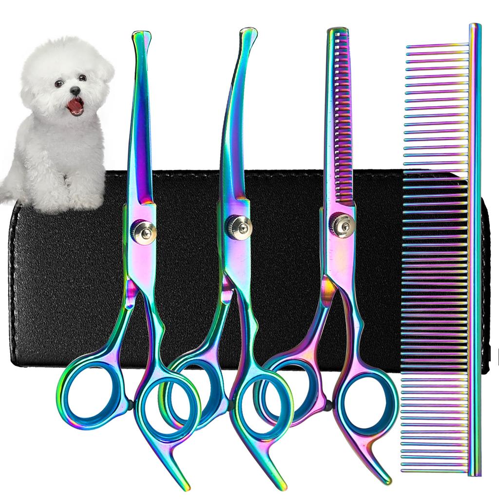 Safty Round Tip Pet Grooming Scissors Dog Hair Tool Set Professional Trimming Scissors Bent Scissors Haircutting Scissors