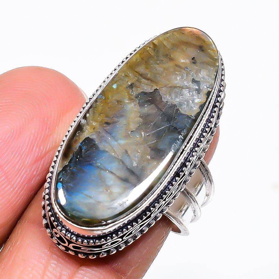 Natural Labradorite Gemstone 925 Sterling Silver Jewelry Ring Size 8 AR-16563