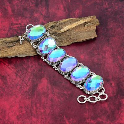 Faceted Mystic Topaz Handmade Jewelry, Mystic Topaz 925 Solid Sterling Silver Bracelet, Handmade Gemstone Silver Bracelet For Love