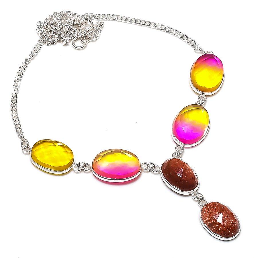 Natural Red Sunstone, Ametrine 925 Sterling Silver Jewelry Necklace 18" ASN-5941