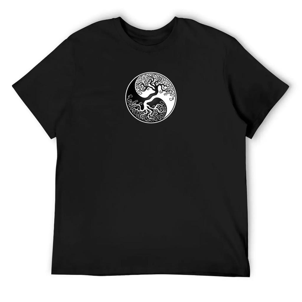 White and Black Tree of Life Yin Yang T-Shirt Clothing Tshirts Personalised Funny Shirt Cotton Clothes for Men