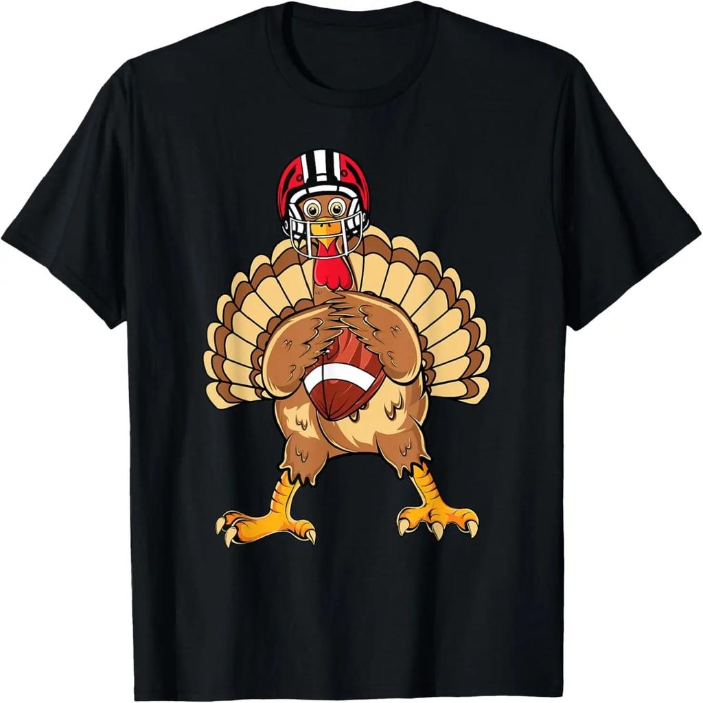 Happy Thanksgiving Turkey Playing Football Dad Men Boys T-Shirt
