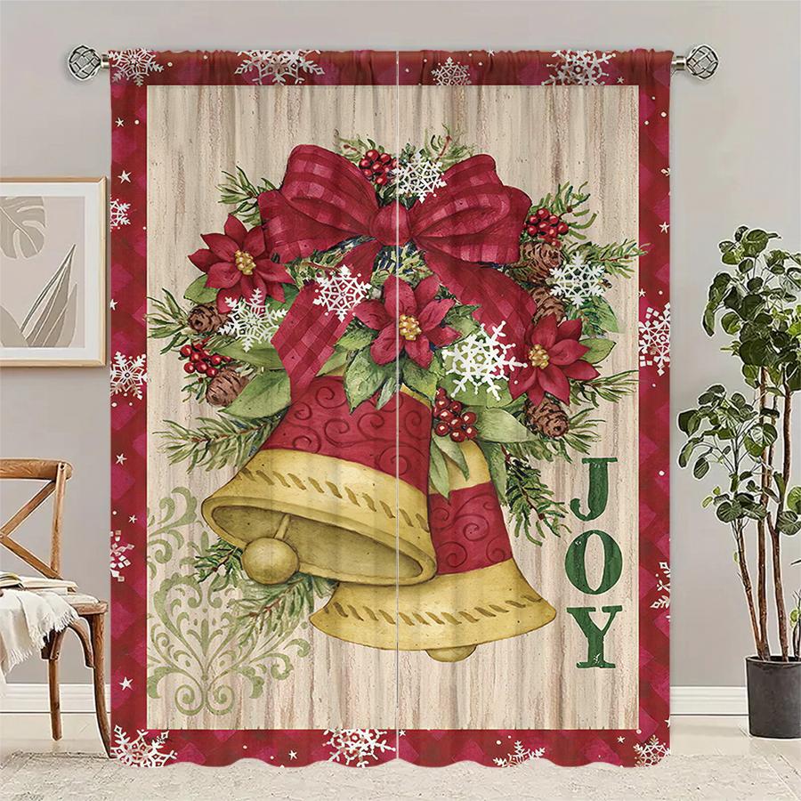 Christmas Golden Bell Print Curtains Christmas Decorations Home Decorations Room Decorations