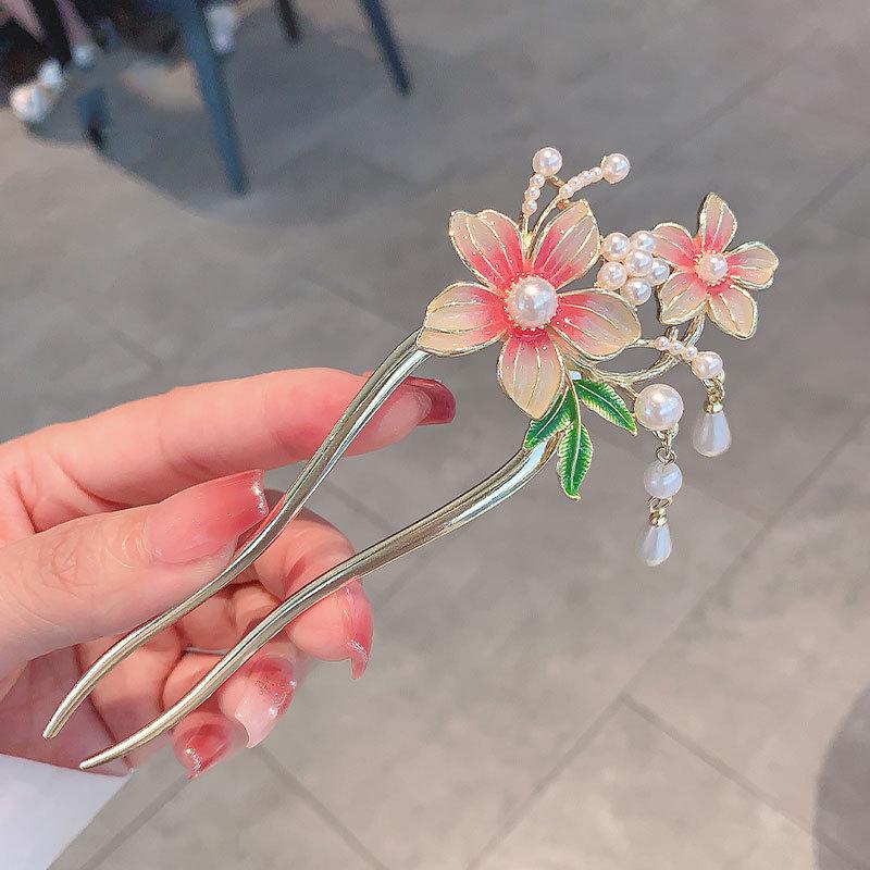 Antique Flower Fringed Hairpin Women's New Chinese Modern Disc Hairpin Cheongsam Ancient Hanfu Hairpin Fashion Headdress