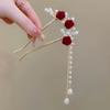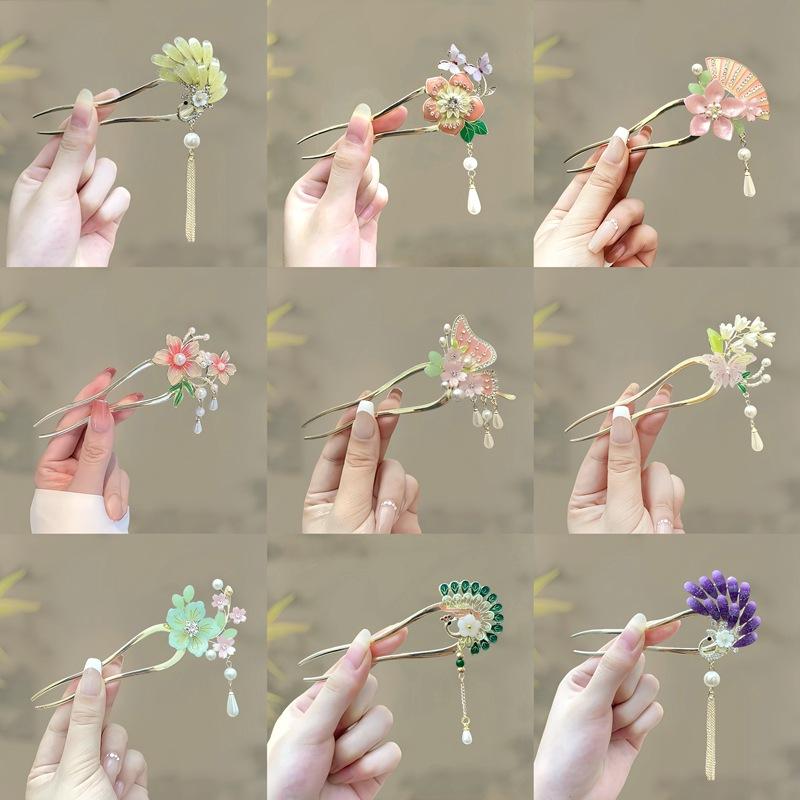 Antique Butterfly Flower Bamboo U-shaped Hairpin Super Fairy Retro Pearl Fringed Hairpin Hanfu Ancient Hairpin Accessories