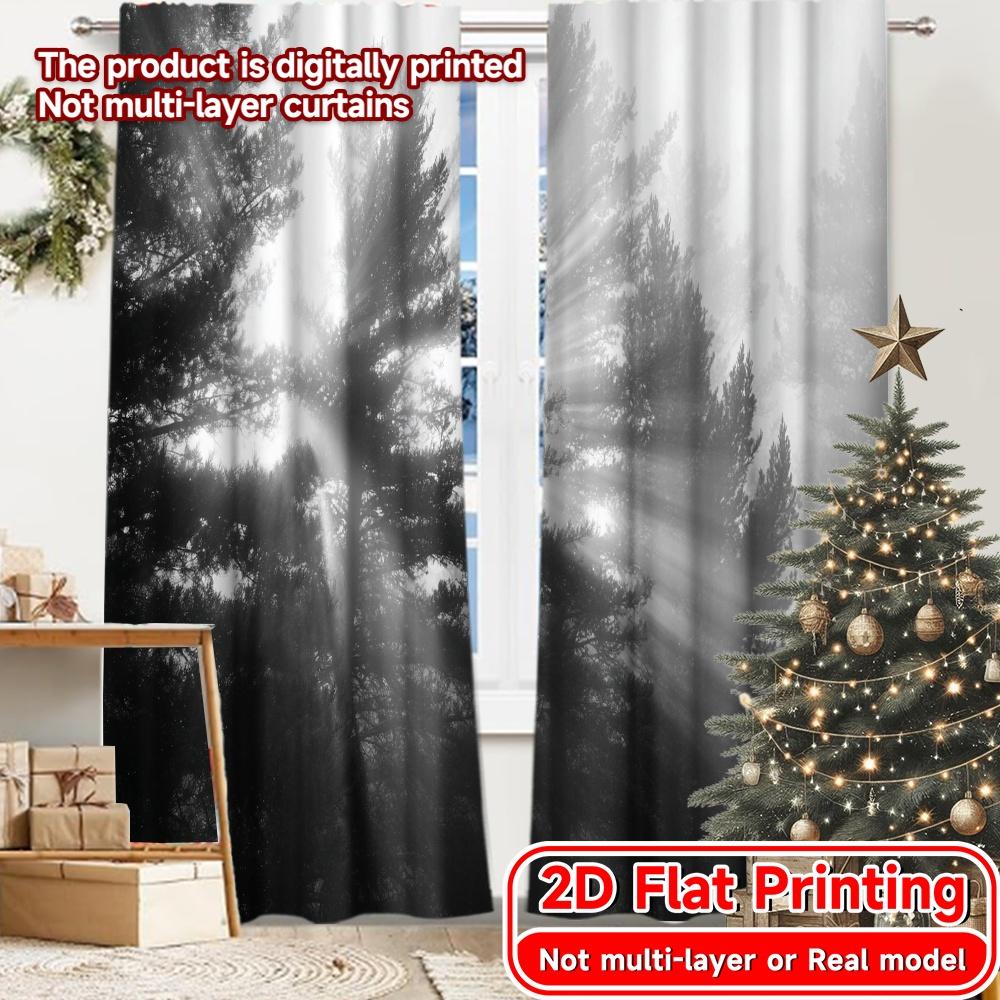2D Flat Printing 2pcs Mystic Pines Minimalist Modern Curtains Versatile 100% Polyester Curtains Thermal Insulation and Room