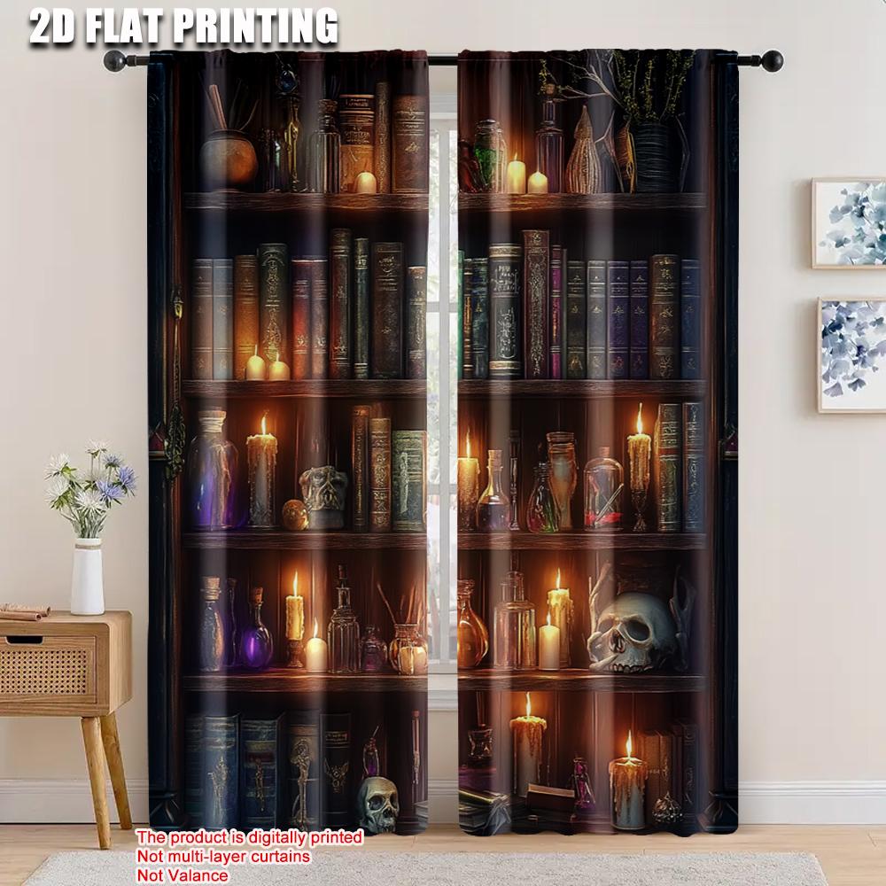 2pcs Spring Summer Curtains Occult Bookshelf Magic Potions Candles Light Filtering Sheer Curtains Polyester Holiday for