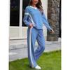 YYFS Women's Fashion Casual Spring Autumn Colour Block Print Long Sleeve O-Neck Trousers Pants Suits