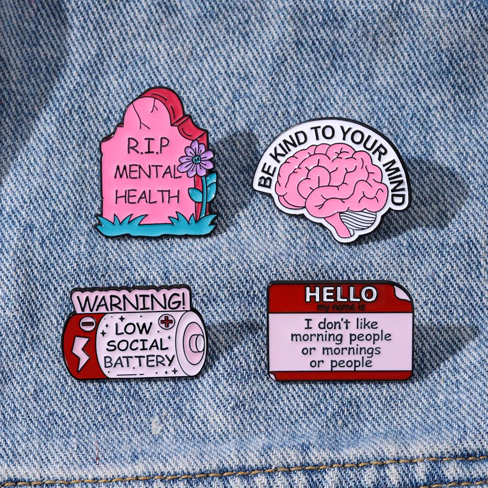 New Low Social Battery Brain Tombstone Metal Badge Mental Health Themed Creative Brooch Ornament