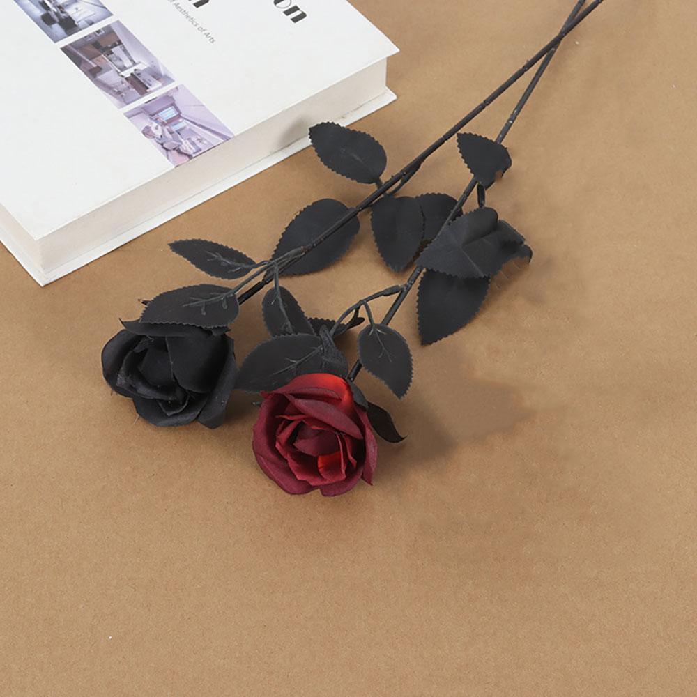 Black Artificial Rose Flowers Halloween Dark Horror Gothic Black Simulated Flower Bouquet for Home Wedding Party Halloween Decor