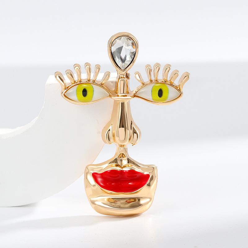 Western Red Lip Nose and Eye Alloy Brooch, Retro Literary Three-dimensional Blue Eye Red Lip Pin