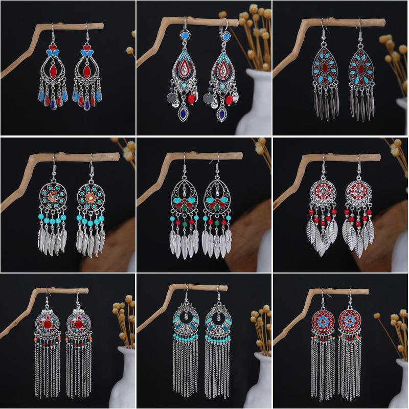 Europe, America, Bohemian Ethnic Style Oval Earrings, Retro Tourist Attractions, Ethnic Minority Fringed Beaded Earrings