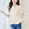 Round Neck Short-sleeved Blouse for Summer Latest Design Niche and Unique Cotton Blouse
