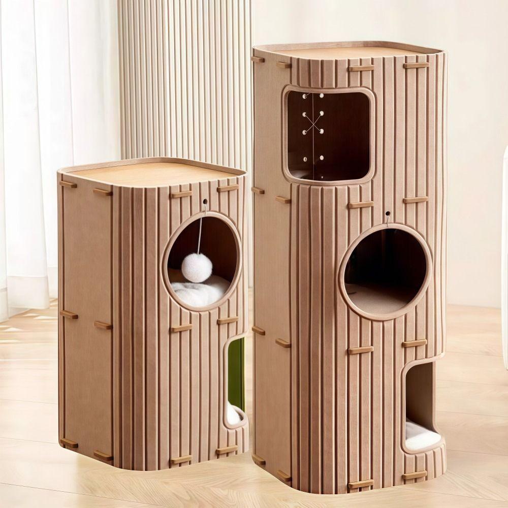 Japanese Style 2 Floors/3 Floors Cat House All-in-one Cylindrical Cat Bed Green with Holes Cat Condo Pet House