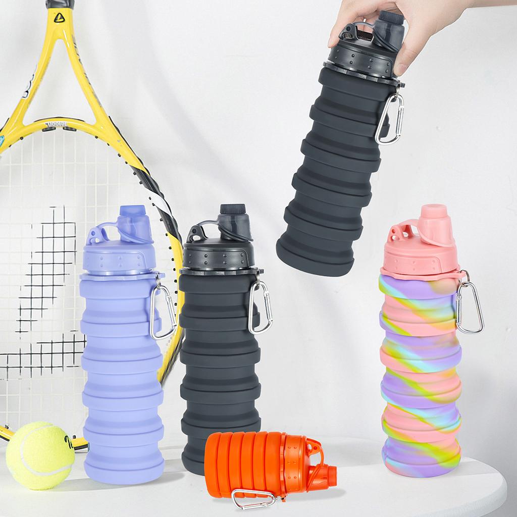 500ML Lightweight Retractable Silicone Bottle Folding Water Bottle Outdoor Use Travel Drinking Cup With Carabiner Collapsible Cup