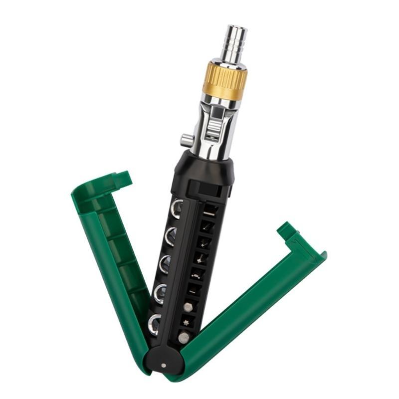 652F Professional Ratchet Screwdriver 14 Interchangeable Heads Adjustable Carbon Steel Construction For Electronics