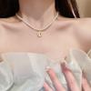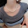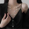 French Long Stacked Colored Pearl Necklace, Simple Temperament Collarbone Chain, Retro Necklace for Women