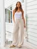 2024 Women's Linen Wide-Leg Drawstring Beach Pants with Pockets - European and American Style