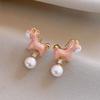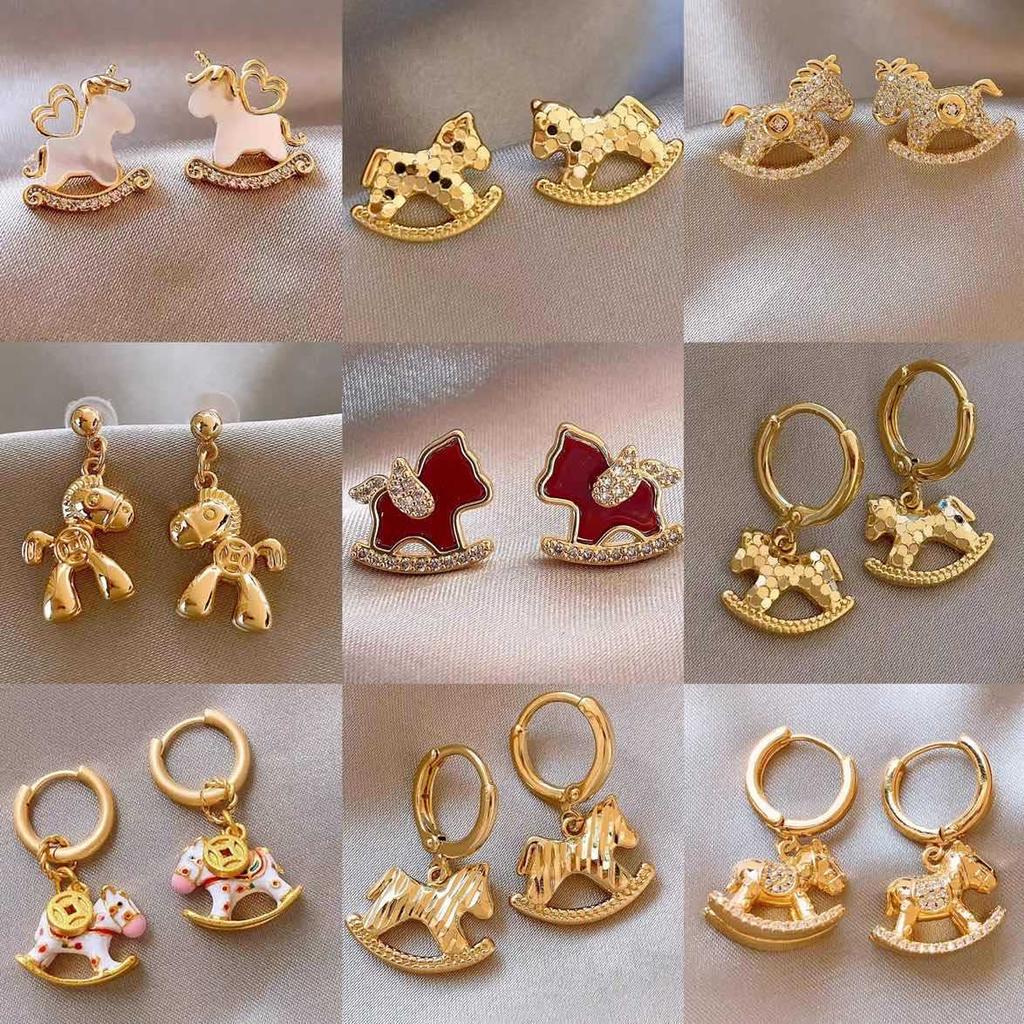 New Chinese Style Simple Natal Year Zircon Pony Earrings Earrings Fashionable and Exquisite Versatile Earrings Women