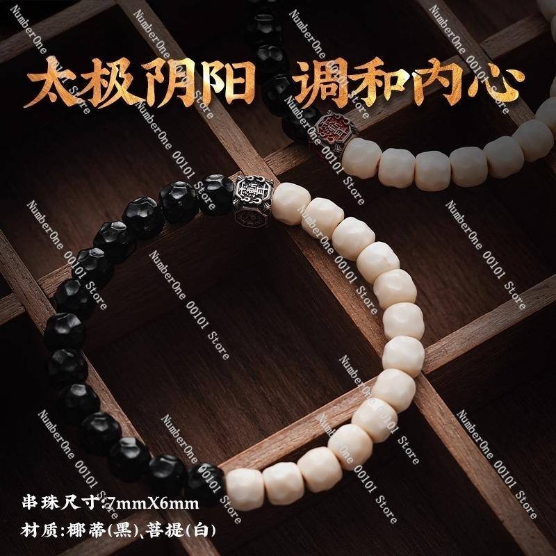 Tai-chi Bracelet with Cultural White Jade Bodhi beads,DIY Bead String Accessories,coconut-shell Crater Beads for Meditation