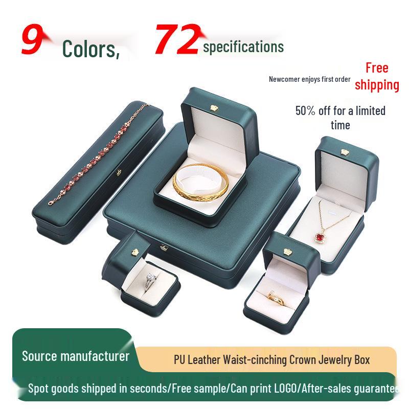 PU Leather Crown Jewelry Storage Box for Necklaces, Pearls, Bracelets, and Rings