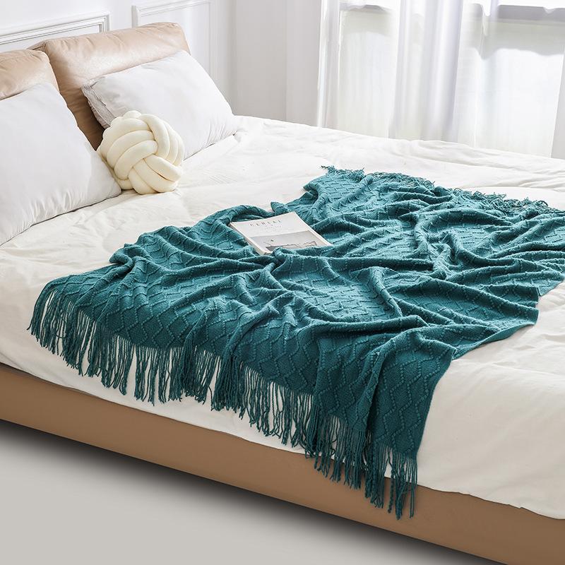 INS Rhombus Thickened Fleece Throw Blanket Knitted Small Sofa Cover Blanket Air Conditioning Bed Nap Blanket Super Soft Hitching Blanket