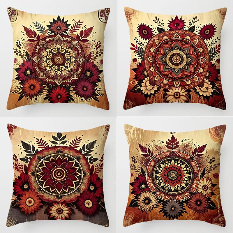 Home Decor Bohemian Floral Mandala Pattern Throw Pillow Pattern Cushion Cover Suitable for Sofa Bedroom Car Pillow Cover