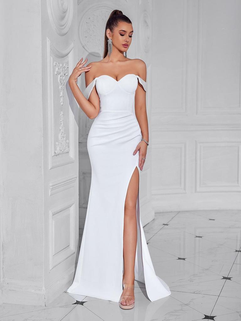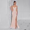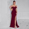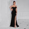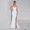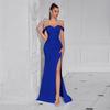 This sophisticated evening dress is designed to make a statement with its elegant and slimming silhouette. Crafted from high-quality polyester fibers, this dress offers both comfort and style. The high slit adds a touch of allure, making it perfect for special occasions. Its sleek design and premium material ensure a flattering fit for any elegant event.