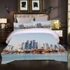 King Queen Duvet Cover City Scenery 3D Single Double Quilt Cover Polyester Bedding Collection For Kids Teens Adults With Pillowcase