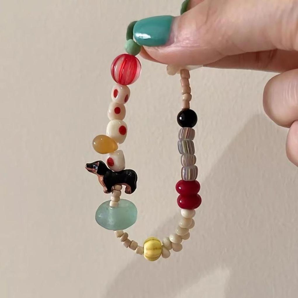 Women's Cute Sausage Puppy Dachshund Bead Bracelet