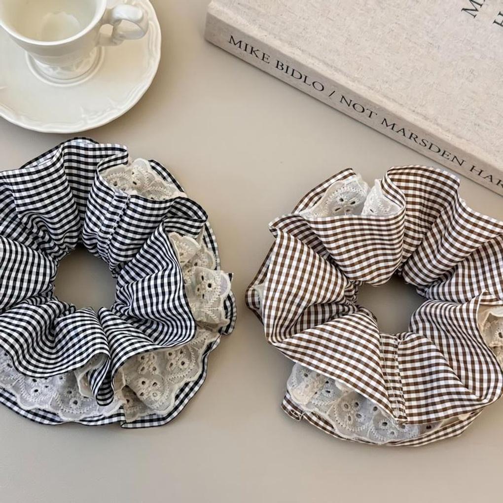 Women's Lace Check Gopchang Hair Band Hair Tie Band