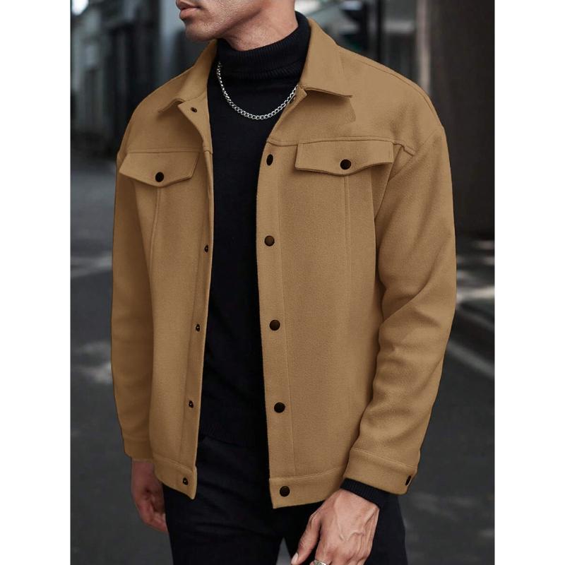 Autumn Winter New Arrival European American Style Mens Lapel Wool Blend Coat Fashion Casual Sporty Cargo Business Jacket Top