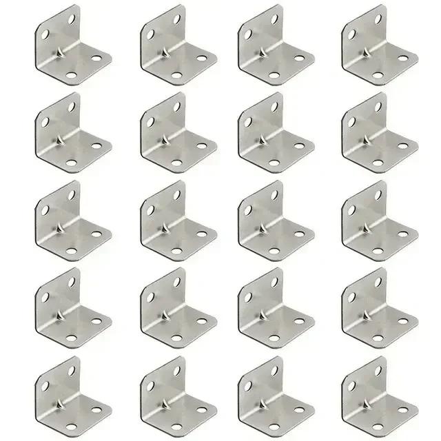 New 20pcs Stainless Steel Corner Bracket 90 Degree Right Angle Fixed L Bracket for Wood Furniture Cabinet Connector Accessories