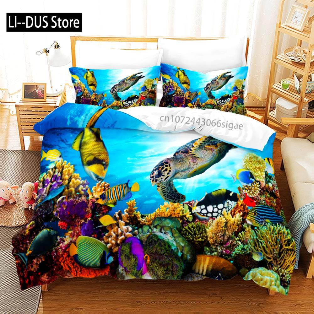 The Underwater World Bedding Set Single Twin Full Queen King Size Fish Bed Set Aldult Kid Bedroom Duvetcover Sets 3D Print 014