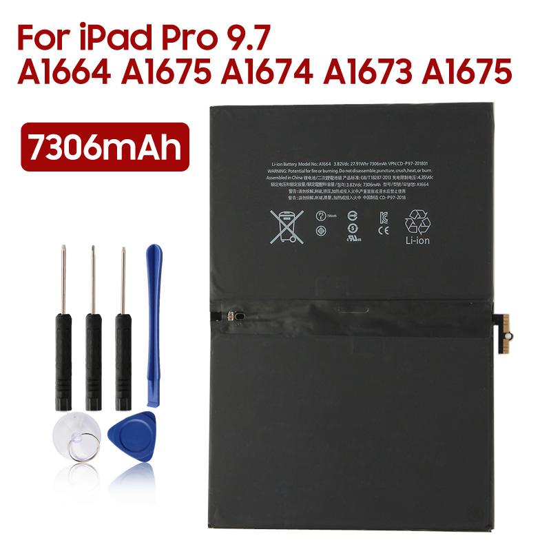 Rechargeable Lithium Battery For iPad Pro 9.7'' Inch A1664 A1675 A1674 A1673 A1675 Tablet Battery 7306mAh