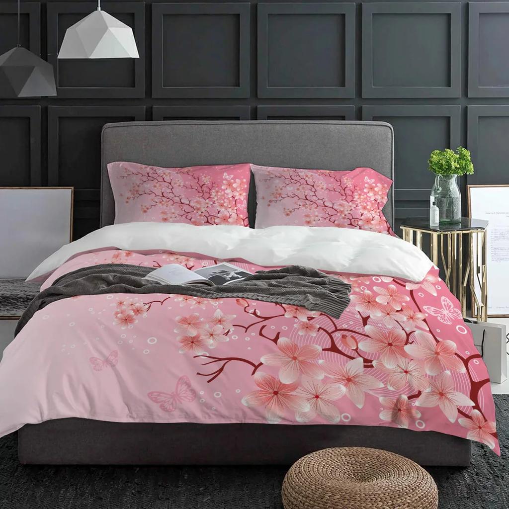 Pink Cherry Blossom Flowers Butterfly Bedding Set 3pcs Duvet Cover Pillowcase Kids Adult Quilt Cover Double Bed Set Home Textile