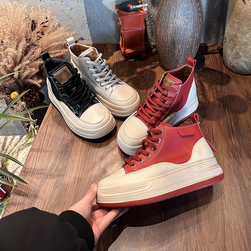 High Top Little White Shoes Women's 2026 Spring Thick Baseplate Shoes Fashion Casual Women's Shoes Retro Sports Shoes