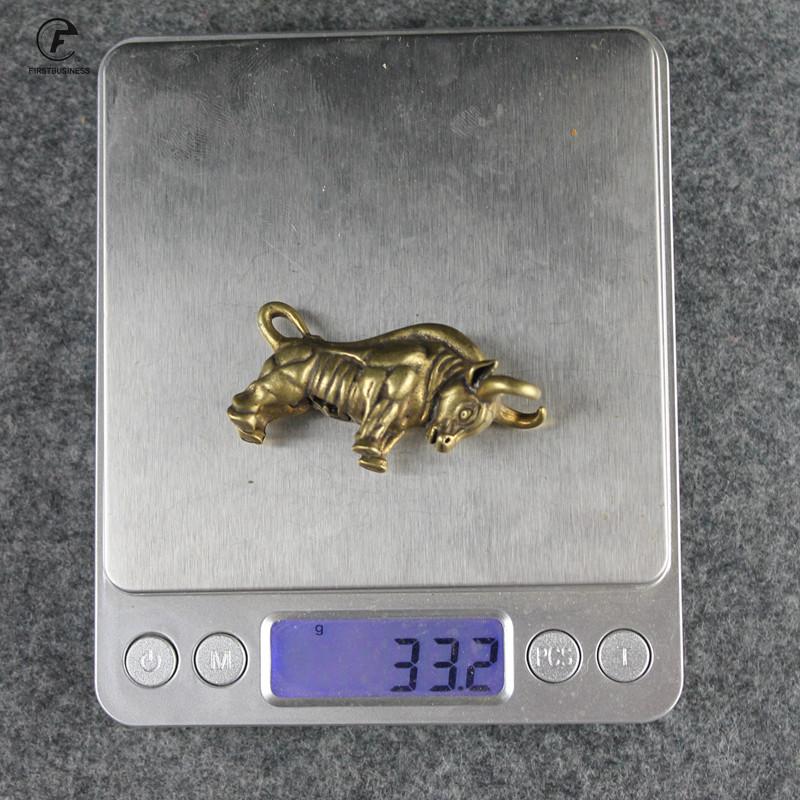 Retro Copper Animal Home Decor Brass Wall Street Bull Figurines Sculpture Car Keychain Pendant Accessories Cow Statue Desk Decor