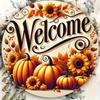 Welcome Sign Wall Art High Definition 2D Print Pumpkin Sunflower Fall Cafe Decor