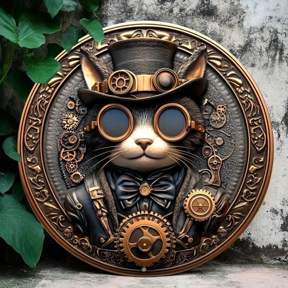 Steampunk Cat Metal Wall Art Tin Sign Decorative Aluminum Home Decor